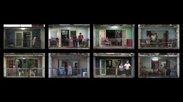 In a synchronized event that took place at 5:30 p.m. on November 25th, 2009 on Calle Principal in the neighborhood of Santo Sotos in Camagüey, Cuba, eight families agreed to have video cameras placed on their balconies, to film and be filmed by each other.